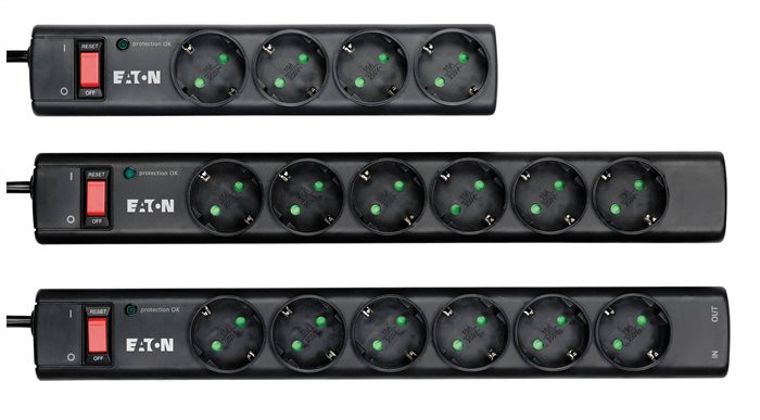 Elosztó, 4 aljzat, túlfeszültségvédő elosztó, EATON "Protection Strip"