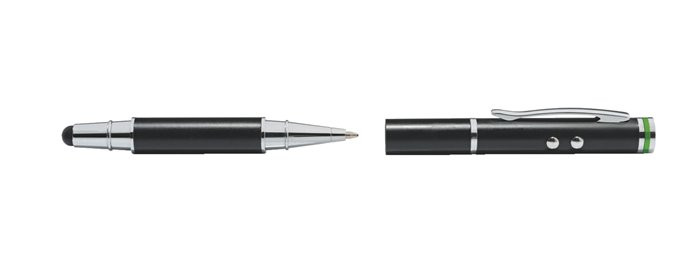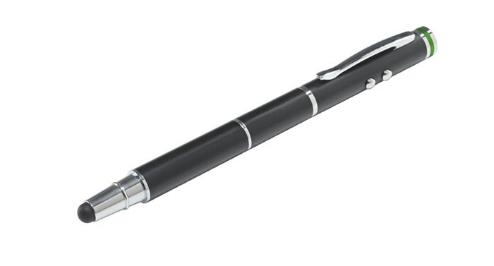 -1 stylus, 4 funkció -érintőképernyős ceruza, melyet golyóstollként, lézermutatóként és zseblámpaként is használhat -tökéletes kiegészítő mobil készülékek számára -precíz műveletvégzéshez az érintőképernyőn -óvja a táblagépet az ujjlenyomatoktól, szennyeződésektől -a puha, szilikon végződésnek köszönhetően megelőzhetők a kijelzőn a használat során keletkező karcolások -kiváló minőségű golyóstoll (cserélhető betétes) -beépített lézermutató prezentációkhoz -beépített LED lámpa -1 db LR41 gombelemmel