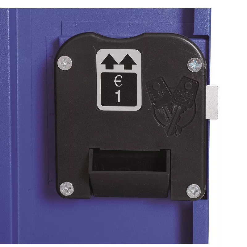 Érmés zár (1 EUR) hosszú és rövid ajtós fém öltözőszekrényhez.