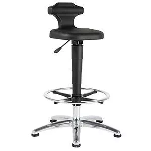 Esd munkaszék csúszkával és lábgyűrűvel, fekete pu habból készült ülés, ülésmagasság 510-780 mm, lábtartó magassága állítható