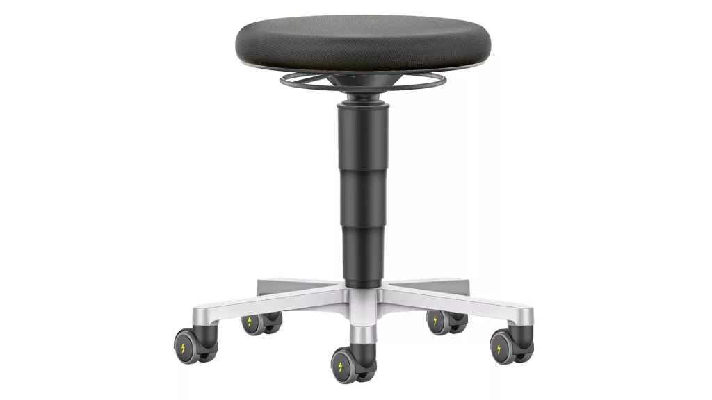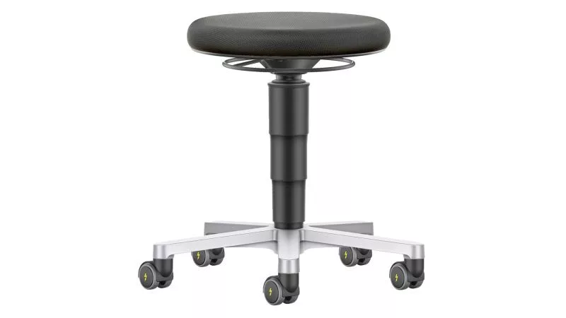 Esd munkaszék gázrugós magasságállítással, fekete integrált habszivacs üléssel és görgőkkel, ülésátmérő. 400 mm, ülésmagasság 450-650 mm