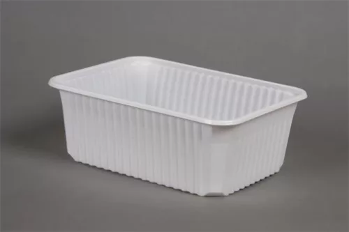 Mikrózható ételtartó doboz, bordázott, masszív, kitűnő hőálló képességgel. Normál adag főételek, főzelékek, húsok, sültek, tészták kiszállítására, újramelegítésére tervezve.