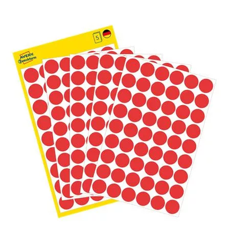 Etikett, 12 mm, kör, AVERY ZWECKFORM, piros, 270 etikett/csomag
