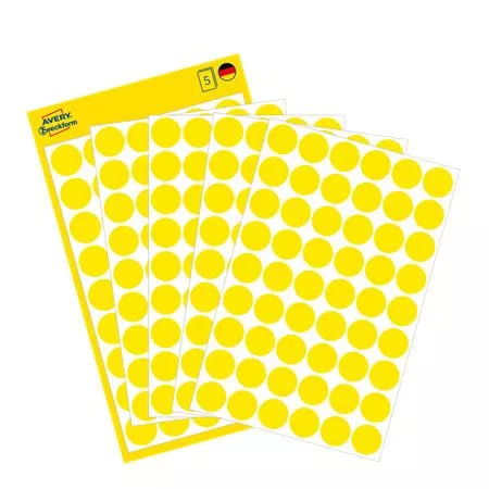 Etikett, 12 mm, kör, AVERY ZWECKFORM, sárga, 270 etikett/csomag