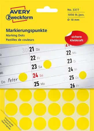 Etikett, 18 mm, kör, AVERY ZWECKFORM, sárga, 1056 etikett/csomag
