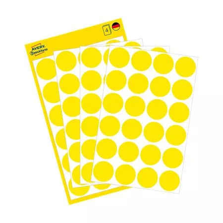 Etikett, 18 mm, kör, AVERY ZWECKFORM, sárga, 96 etikett/csomag