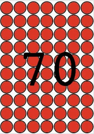 Etikett, 19 mm kör, színes, A5 hordozón, APLI, piros, 560 etikett/csomag