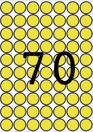 Etikett, 19 mm kör, színes, A5 hordozón, APLI, sárga, 560 etikett/csomag