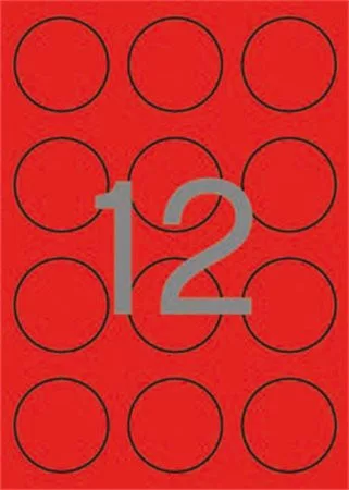 Etikett, 60 mm kör, színes, APLI, neon piros, 240 etikett/csomag