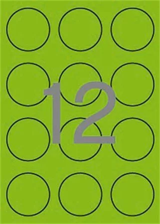Etikett, 60 mm kör, színes, APLI, neon zöld, 240 etikett/csomag