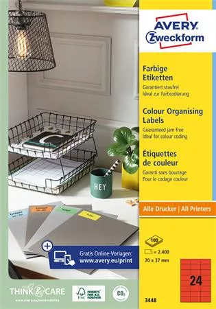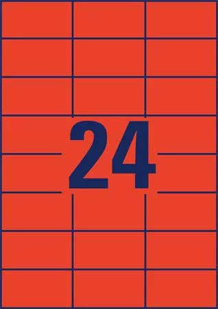 Etikett, 70x37 mm, színes, AVERY ZWECKFORM, piros, 2400 etikett/csomag