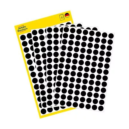 Etikett, 8 mm, kör, AVERY ZWECKFORM, fekete, 416 etikett/csomag