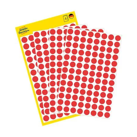 Etikett, 8 mm, kör, eltávolítható, AVERY ZWECKFORM, piros, 416 etikett/csomag