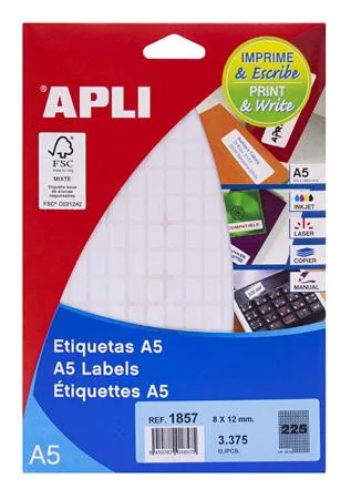 Etikett, 8x12 mm, kerekített sarkú, A5 hordozón, APLI, 3375 etikett/csomag