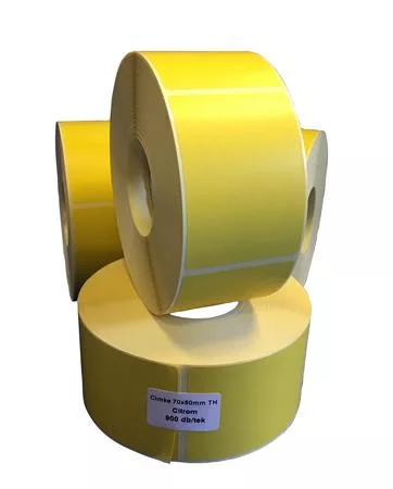 Etikett, thermo, 70x50 mm, 900 etikett/tekercs, citromsárga