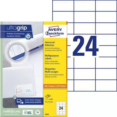 Etikett, univerzális, 70x37 mm, AVERY ZWECKFORM, 2400 etikett/csomag