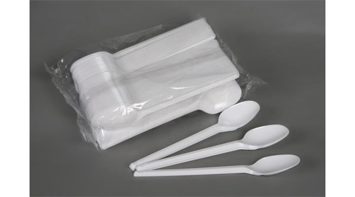Fehér, műanyag eldobható kanál, kerti partik, büfék és fesztiválok elengedhetetlen kelléke.