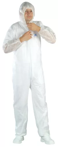 * 30 g /m2 vastag, fehér SPP polipropilén alapanyag* kiválóan szellőző, ruhára is vehető fehér színű, kapucnis overál húzózárral* deréknál, csuklónál, bokánál és kapucninál körben gumírozott
