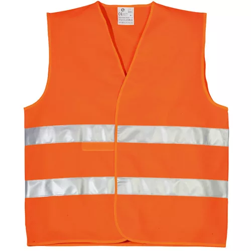 szellőző, könnyű 120 g/m2 poliészter anyag, jól láthatósági színekbenkettő, 5 cm széles, párhuzamos fényvisszaverő keresztcsíktépőzárral állítható bőség