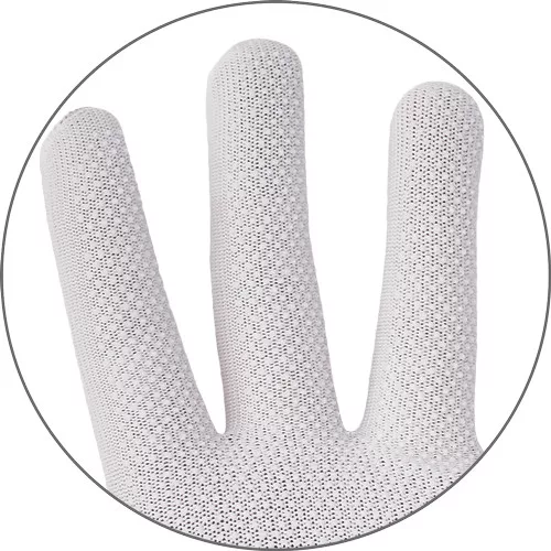 • kötött PES védőkesztyű, tenyerén PVC pöttyökkel, rugalmas mandzsettával
