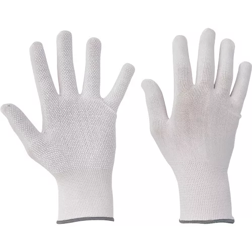 • kötött PES védőkesztyű, tenyerén PVC pöttyökkel, rugalmas mandzsettával