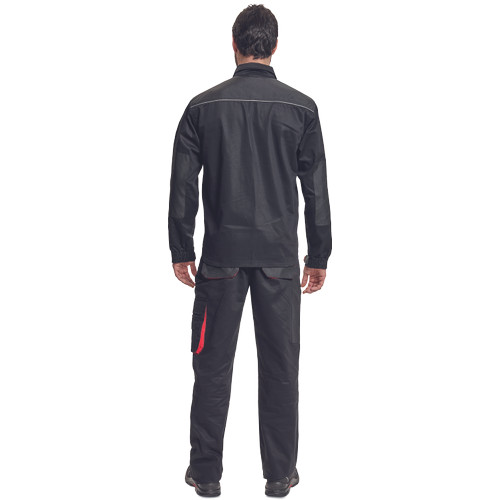 • férfi munkakabát • cipzáras kivitelben, tépőzáras hajtókával • 2 tépőzáras mellzseb • 2 multifunkcionális oldalzseb • OXFORD poliészter erősítés könyökrészeken és a vállakon • 100% pamut, 235g/m2