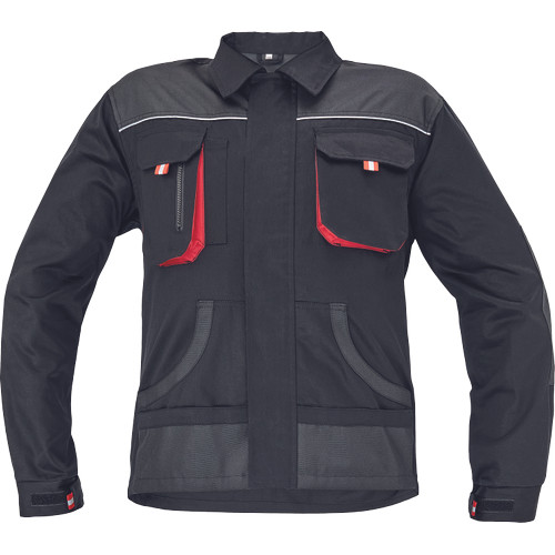 • férfi munkakabát • cipzáras kivitelben, tépőzáras hajtókával • 2 tépőzáras mellzseb • 2 multifunkcionális oldalzseb • OXFORD poliészter erősítés könyökrészeken és a vállakon • 100% pamut, 235g/m2