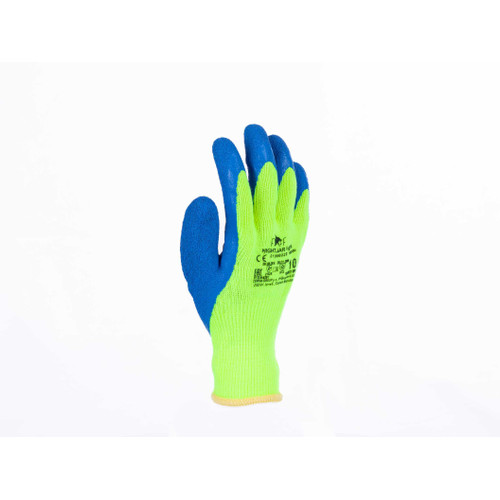 • akril védőkesztyű tenyéren és ujjakon kék latexbe mártva