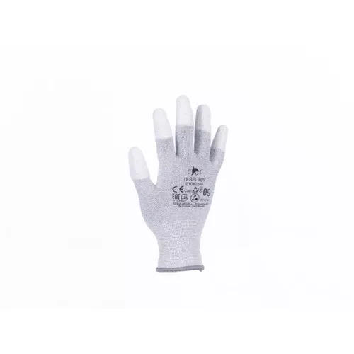 • kötött, varratmentes, antisztatikus PES kesztyű integrált szénszállal • ujjhegyen PU mártás •rugalmas mandzsetta