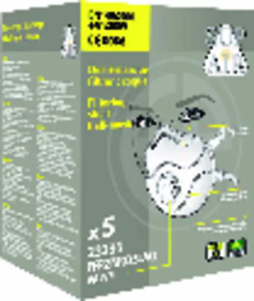 * véd szerves gőzök hatása ellen a megengedett koncentráció alatti szintigvéd továbbá gyenge mérgek, mérsékelten veszélyes szilárd és folyékony részecskék, valamint szagok ellen* kónusz forma, alumínium orrcsipesz, kényelmes felfekvést segítő szivacscsík, nem allergén* külső pp-SMS, belső poliészter réteg, elektrosztatikus polipropilén közszűrő, légzést segítő szelep, aktívszenes előszűrő réteg, szerves gőzök ellen, felhelyezés állítható, rugalmas pántokkal* tökéletes illeszkedést segítő, puha polietilén-hab belső gyűrűnem allergén