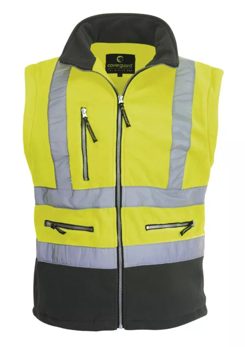 * 330 g/m2 vastag, bolyhosodásmentes thermo-polár, sárga/sötétkék színben* kettő az egyben: levehető ujjakkal polár mellénnyé alakítható* fluo jól láthatósági anyag, hosszanti és keresztirányú fényvisszaverő csíkokkal* gumizott ujjvégek, zsinórral állítható aljrész, álló gallér, egy felső- és két alsó cipzáros zseb