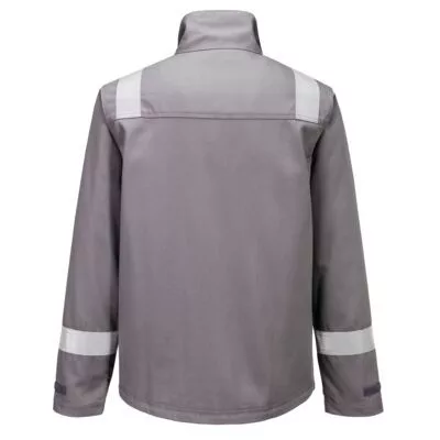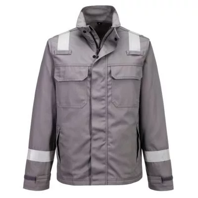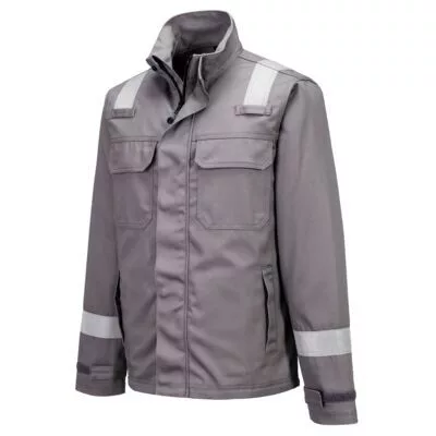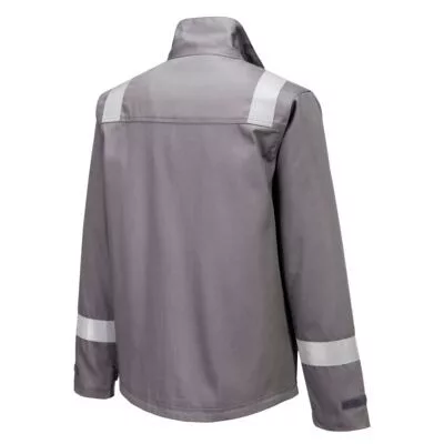 Ez az FR saválló kabát az EN13034 szabvány szerint tanúsított és kiváló védelmet nyújt a vegyi anyagokkal szemben, valamint lángálló, antisztatikus, hegesztő és íválló védelmet biztosít. Kiváló pamut alapanyagból készült, amely rendkívül tartós. Jellemzői közé tartozik a biztonságos fémmentes patentos és cipzáras elülső rész. Párosítható az FR417 FR nadrággal vagy az FR418 FR kantáros nadrággal.