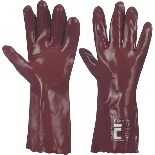 • PVC mártott védőkesztyű kötött pamut kesztyűalapon • védelmet nyújt mechanikai és vegyi kockázatok ellen • hossz: 35 cm