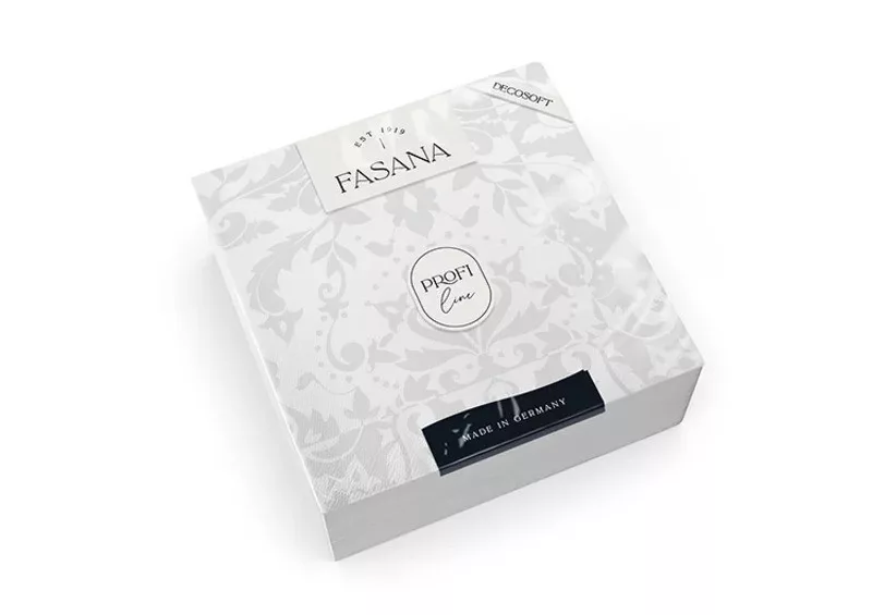 A FASANA DecoSoft Victorian szalvéta az elegancia és a minőségi anyagok ötvözete. Kiváló nedvszívóképességű, a speciálisan kialakított dombornyomás pedig extra puhaságot biztosít. A FASANA DecoSoft szalvéta szemet gyönyörködtető és valóban kitűnik a tömegből. Az igényes rendezvények ideális kísérője. Csomagolás: 50 lap/csomag, 12 csomag/karton.