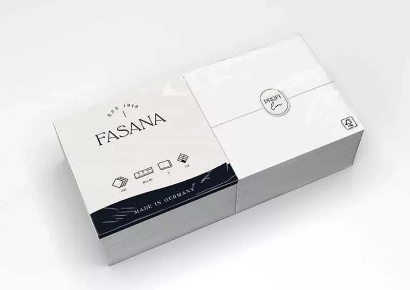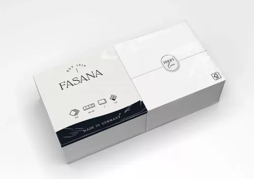 Fasana Dinner szalvéta 2 rétegű alapanyagból, 1/8 hajtással, 40x40 cm lapméretben. Ezt a nagyméretű szalvétát általában vacsoráknál szokták bekészíteni. Kiváló nedvszívóképességű, a speciálisan kialakított dombornyomás pedig extra puhaságot biztosít. Kiválóan alkalmazható gyorsétkezdék, ebédlők, éttermek esetében. A kínálatot gazdag színskála jellemzi, ami kiváló díszítő elemként is funkcionál. Csomagolás: 250 lap/csomag, 6 csomag/karton.
