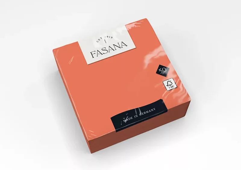 Fasana Lunch mini szalvéta 3 rétegű alapanyagból, 1/4 hajtással, 33x33 cm lapméretben. Kiváló nedvszívóképességű, a speciálisan kialakított dombornyomás pedig extra puhaságot biztosít. Kiválóan alkalmazható gyorsétkezdék, ebédlők, éttermek esetében. Az 1/4 hajtás optimális méretet biztosít, egyszerűen és gyorsan használható. A kínálatot gazdag színskála jellemzi, ami kiváló díszítő elemként is funkcionál. Csomagolás: 50 lap/csomag, 14 csomag/karton.