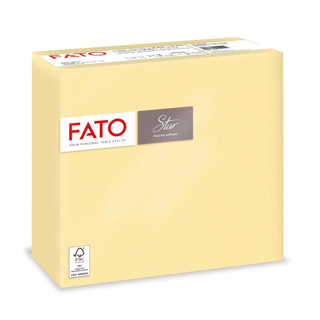 A FATO sztár 38×38 cm-es szalvéták a 33×33 cm-es változathoz képest nagyobb méretűek és vastagabbak a hagyományos papír szalvétáknál, így praktikusabbak ünnepi asztalokhoz vagy nagyobb adagokhoz. Színes, dekoratív kiegészítőt kínálnak minden étkezéshez. Puha, minőségi cellulózból készülnek, jól szívják a nedvességet, miközben feldobják az asztalterítést és a hangulatot.
