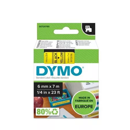 Feliratozógép szalag, 6 mm x 7 m, DYMO "D1", sárga-fekete