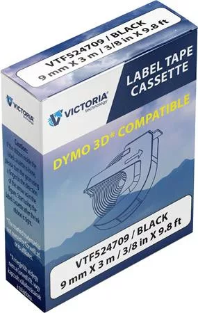 Feliratozógép szalag, 9 mm x 3 m, VICTORIA TECHNOLOGY, fekete