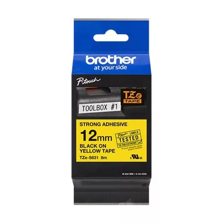 Feliratozógép szalag, erős tapadású, 12 mm x 8 m, BROTHER, "Professzionális TZe-S631 " sárga-fekete