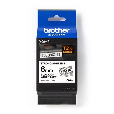 Feliratozógép szalag, erős tapadású, 9 mm x 8 m, BROTHER, "Professzionális TZe-S221" fehér-fekete