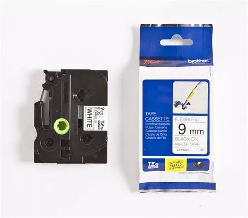 Feliratozógép szalag, flexibilis ID, 9 mm x 8 m, BROTHER, "TZe-FX221" fehér-fekete