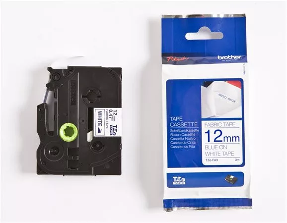 Feliratozógép szalag, vasalható, 12 mm x 3 m, BROTHER, "TZe-FA3" fehér-kék