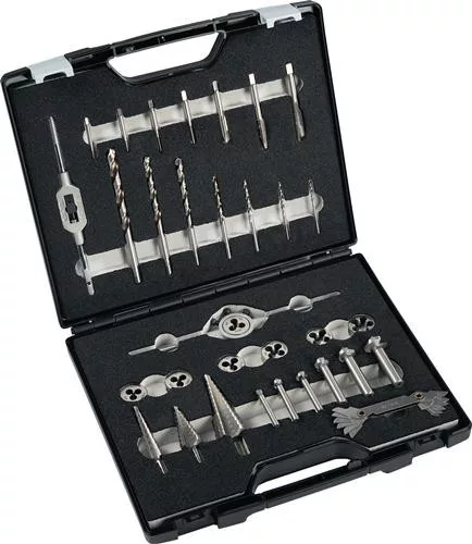 Fémmegmunkáló készlet M3-M12 33 részes HSS műanyag tok PROMAT/TECWERK