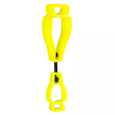 Ez az öntött kesztyűkapocs dielektromos anyagból készült, amely nem képes áramot vezetni és nem korrodál. A nagyméretű, 20 cm-es kapocs a legtöbb személyi védőfelszereléshez csatlakozik, és 6 kg-os maximális erővel rendelkezik. A kesztyűkapocs biztonsági kiloldóval van ellátva, hogy megakadályozza a beakadást.