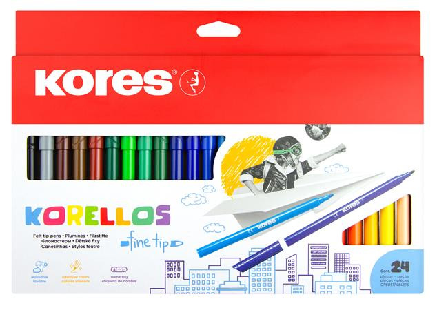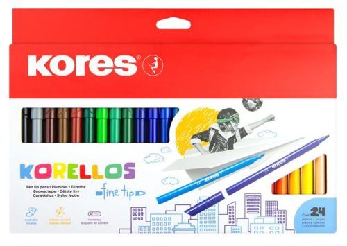Filctoll készlet, kimosható, KORES "Korellos", 24 különböző szín