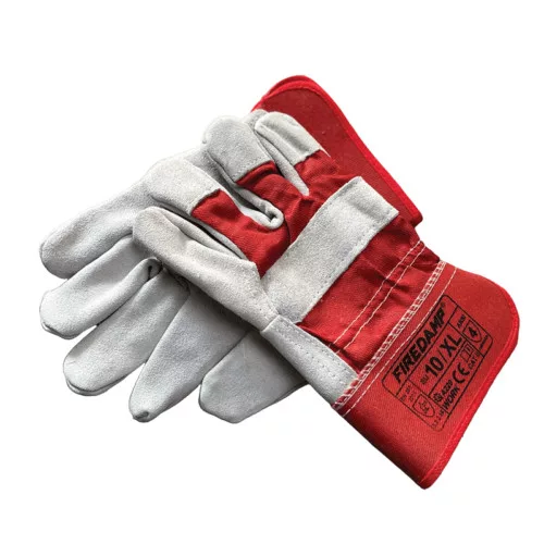 Magas minőségű bőrből készült rakodó kesztyű. Strapabíró piros vászon kézhát, pamut bélés.