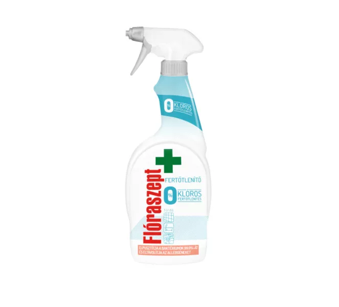 A Flóraszept fürdőszobai klórmentes fertőtlenítő tisztítószere elpusztítja a baktériumok 99%-át. Kiváló a fürdőszobai szennyeződések tisztítására és fertőtlenítésére klór nélkül. Erős formulája eltávolítja az allergéneket is, mint a poratkákat és polleneket. A Flóraszept fürdőszobai tisztítószer hatékonyan tisztítja meg a lemosható felületeket a fürdőszobában. PT2 fertőtlenítő hatású tisztítószer.A napi felhasználású fertőtlenítéshez permetezze a teljes felületre és hagyja hatni 15 percig, öblítse le és törölje át egy nedves törlőruhával vagy szivaccsal. Erősen szennyezett felületek tisztítására permetezzen kétszer.Használat előtt olvassa el, használat közben pedig tartsa be a termék használati útmutatóját és a figyelmeztetéseket.Összetevők: Fertőtlenítőszer: 0,17 g szalicilsav 100 g termékben (0,19 g nátrium-szalicilátból), <5% nem ionos felületaktív anyagok, Illatanyag.Csomagolás: 1 db, gyűjtőcsomagolás: 12 db.
