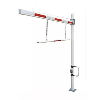 Forgatható magassághatároló, 6 m-es blokkszélesség, állítható. akár 2,8 m szabad magasság, 101,6x2,9 mm-es horganyzott tartók, 86x46 mm-es alumínium korlátgerendák, pl. tiplik
