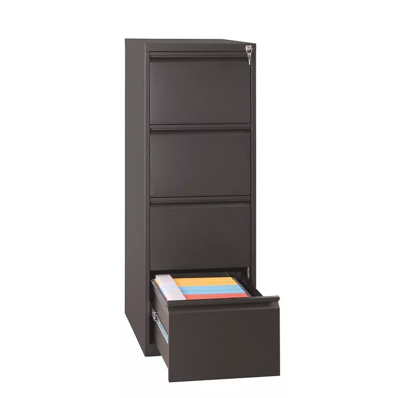 Robosztus, hegesztett acél szekrény. A fiókok halk, csapágyazott teleszkópsíneken, teljesen kihúzhatóak. Dupla biztosítás a kihúzás és a borulás ellen. Központi zár, főkulcsos opcióval.
